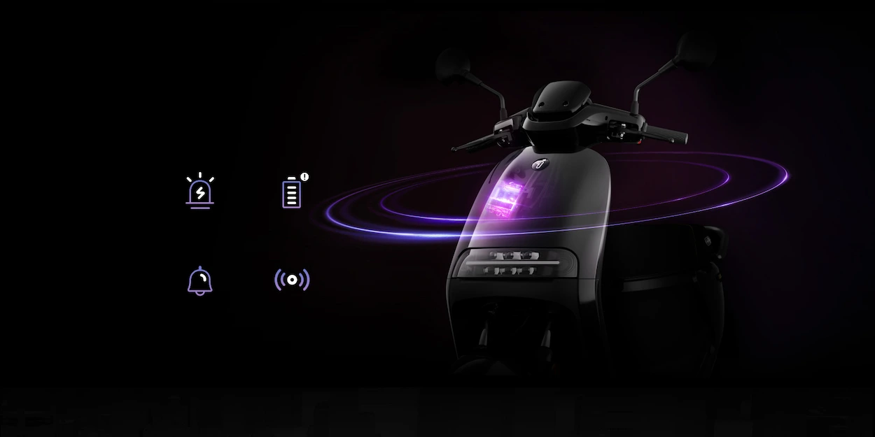 Permanentní mobilní konektivita a příjmač GPS zajišťují neustálý monitoring stavu a polohy skútru. Díky pokročilé ochraně proti krádeži máte klidné spaní. Jakmile dojde k podezřelému chování, systém okamžitě hlasí jeho polohu v aplikaci a aktivuje alarm. Majitel má též možnost v případě zcizení dálkově vyřadit z provozu odcizený stroj a jeho baterii. Aplikace umí dálkově odemknout skútr například pro kamarády a ovládat klakson i světla, například na velkém podzemním parkovišti.
